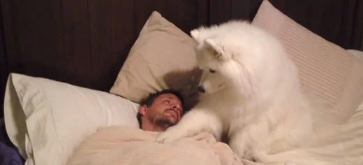 Lexi is a very sweet Samoyed. This cute dog, who is as active as a child at home, thinks that her father is on his way to waking up.