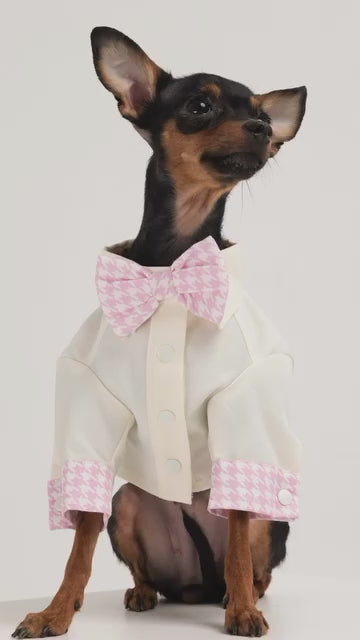 Each shirt in this delightful collection features not only these eye-soothing colors but also comes adorned with charming bow ties, imparting a touch of sophistication to your pet's wardrobe. The exquisite craftsmanship shows itself on the collars and cuffs, that made the shirts look bespokely designed. The addition of the graffiti-inspired Moshiqa logo on the back introduces an element of playfulness and modernity making these elevated shirts a standout fashion choice for your furry friend.