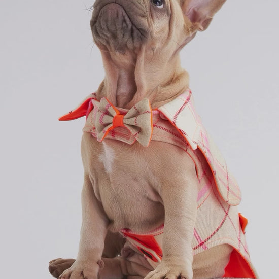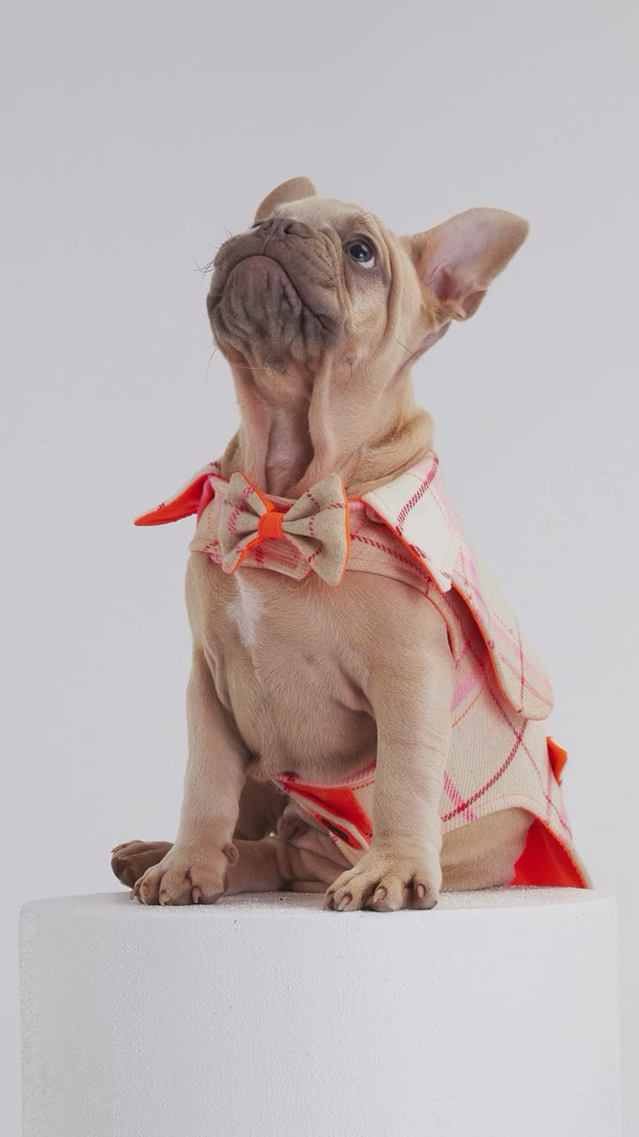 Crafted from the finest Italian Cashmere, this coat is chic and cozy, perfect for fashionable winter walks. Its tailored fit and timeless tartan pattern make it a must-have for your furry friend's wardrobe. With a secure tummy closure that functions as a harness, a collar, and a cute front bow, this coat combines style with functionality.